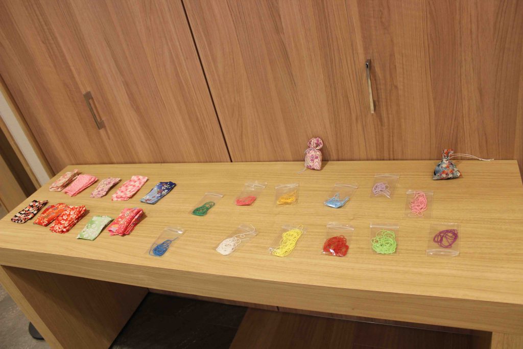 受講者様にはその中から好きな柄のお香袋と好きな色の紐を選んでいただき、香りは勿論のこと、目で見て楽しめる、選んで楽しめる、ひとりひとりの個性が出せる体験会となりました。