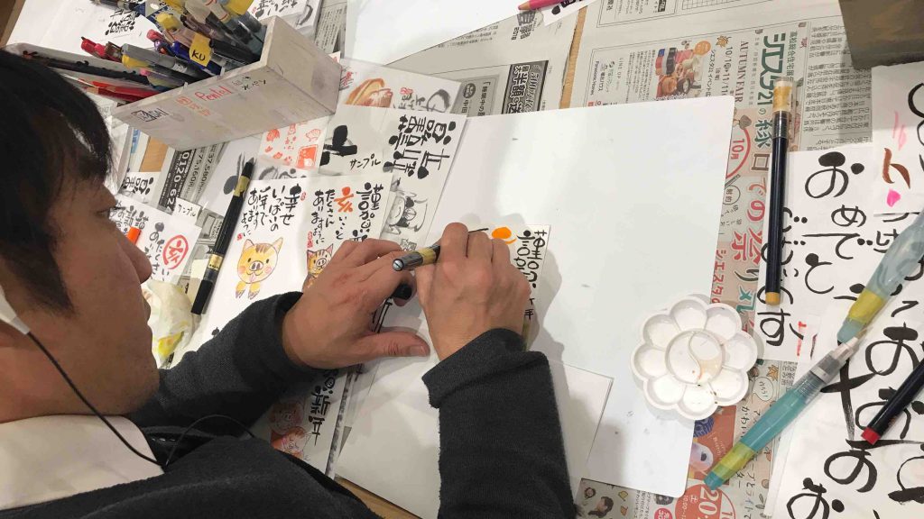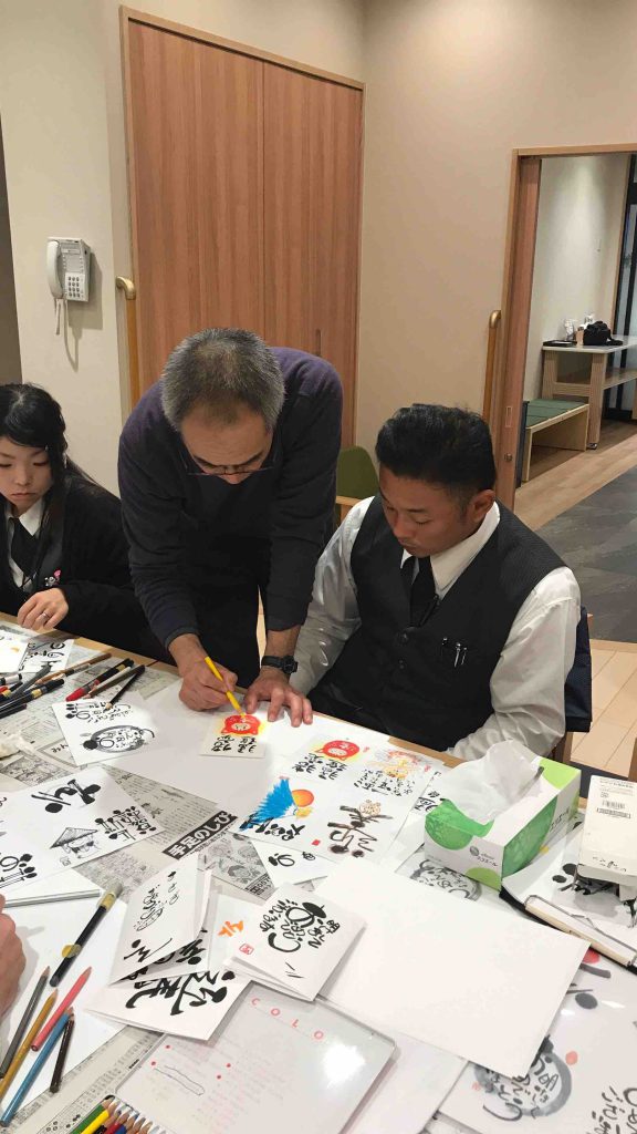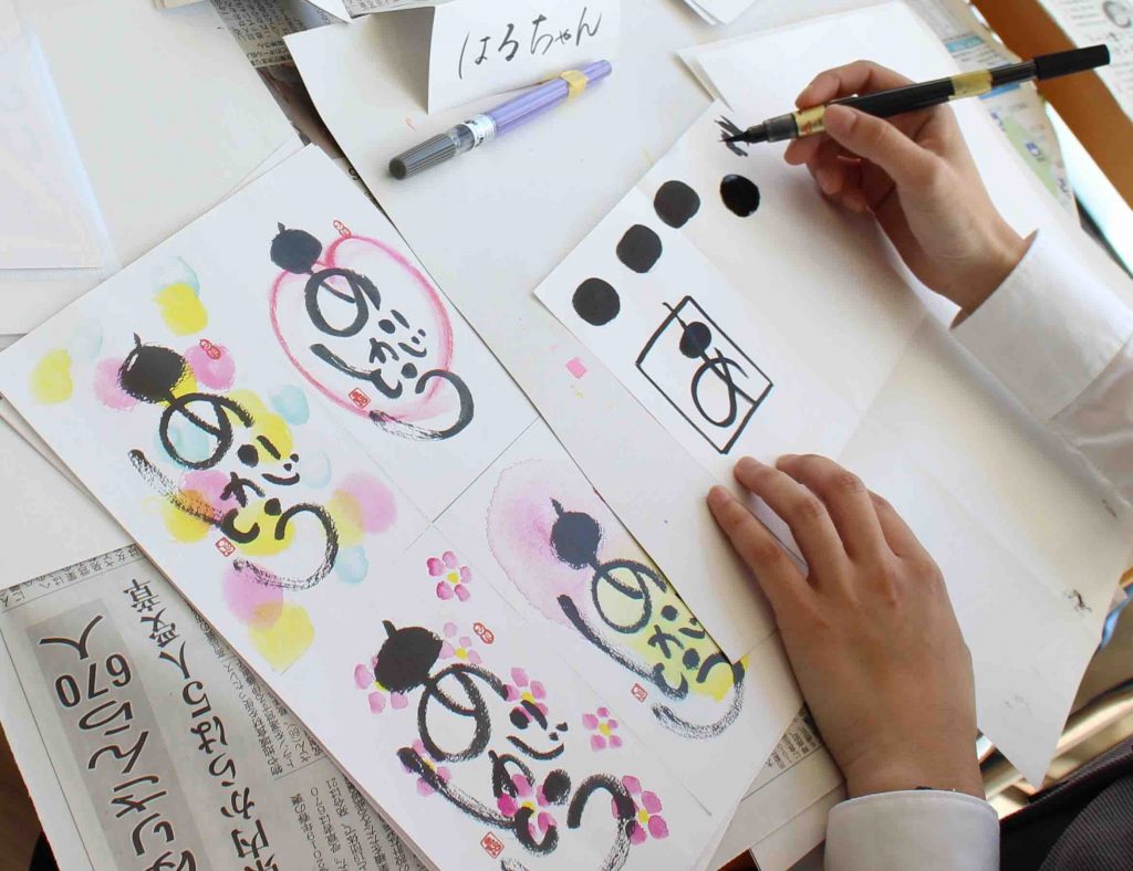 最初は筆ペンの扱いに悪戦苦闘する体験者の方もいらっしゃいましたが、何度も練習するうちにみんないきいきと描いていました。