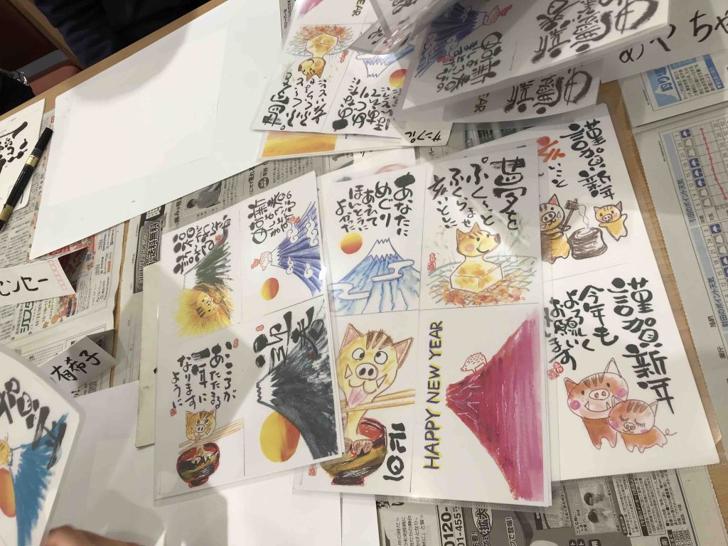 最後は『ありがとう』、『令和』をハガキに書いて。発表会です。