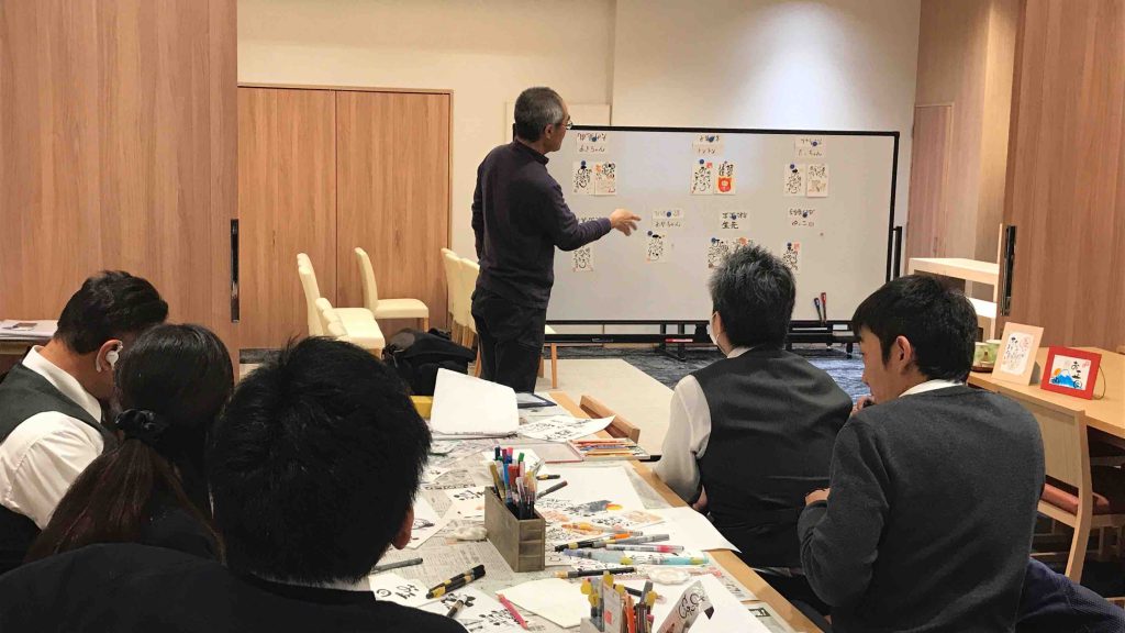 最初は筆ペンの扱いに悪戦苦闘する体験者の方もいらっしゃいましたが、何度も練習するうちにみんないきいきと描いていました。