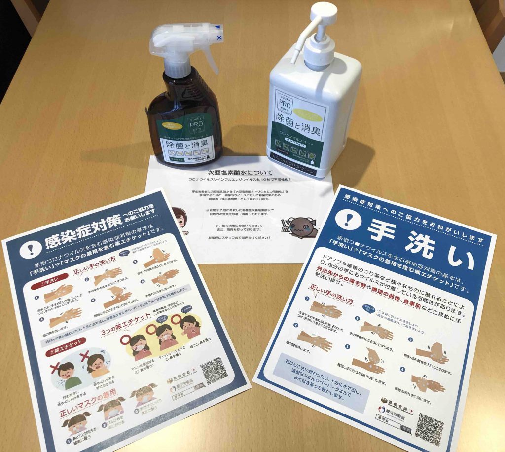当会館では、新型コロナウイルス感染症拡大に伴い、お客様が安心してご滞在いただけるよう下記の感染予防対策を行い、お客様と従業員の健康と安全ならびに公衆衛生の配慮に努めてまいります。