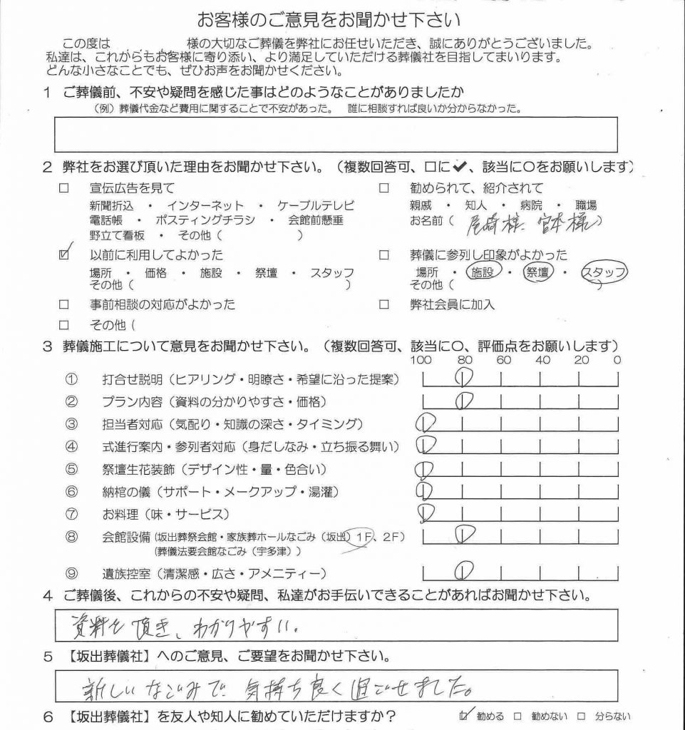 お別れのときに好きな飲み物を入れてあげたりと、最後まで寄り添って送ってあげられた暖かい御葬儀だと感じました。