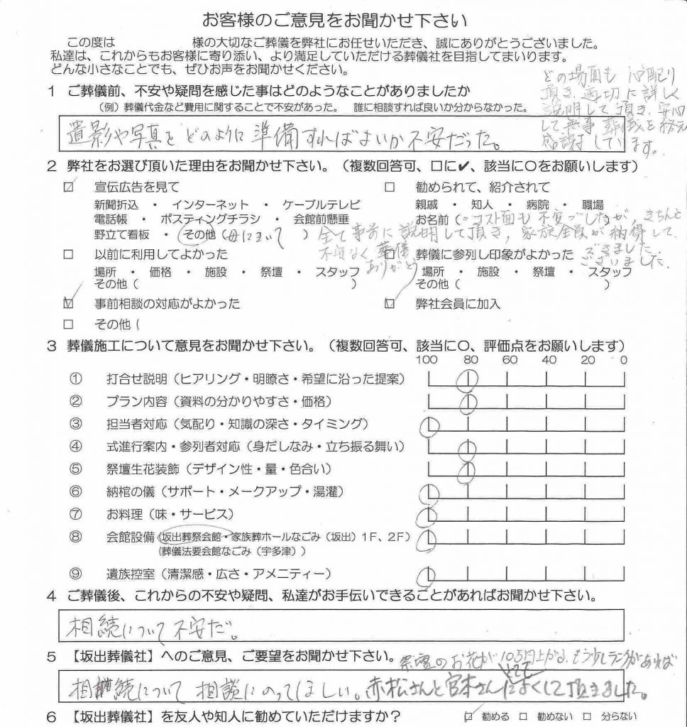実際、葬儀担当もさせていただきましたが、その都度お客様の不安を取り除きました。