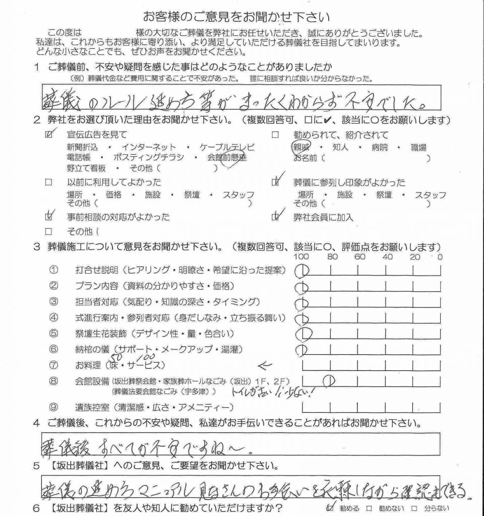 その気持ちを当家に伝えると、葬儀に対しての不安が和らぎ安心して打ち合わせをしていただけました。